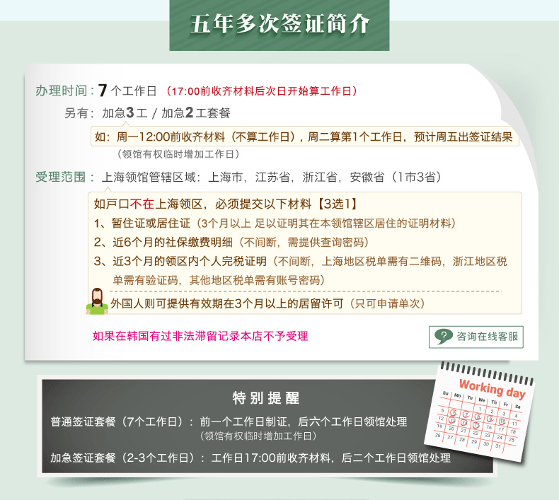 【核心优势】:韩领馆指定送签社+下单立减+简化材料+加急3工作日出+赠送日上95折优惠券
